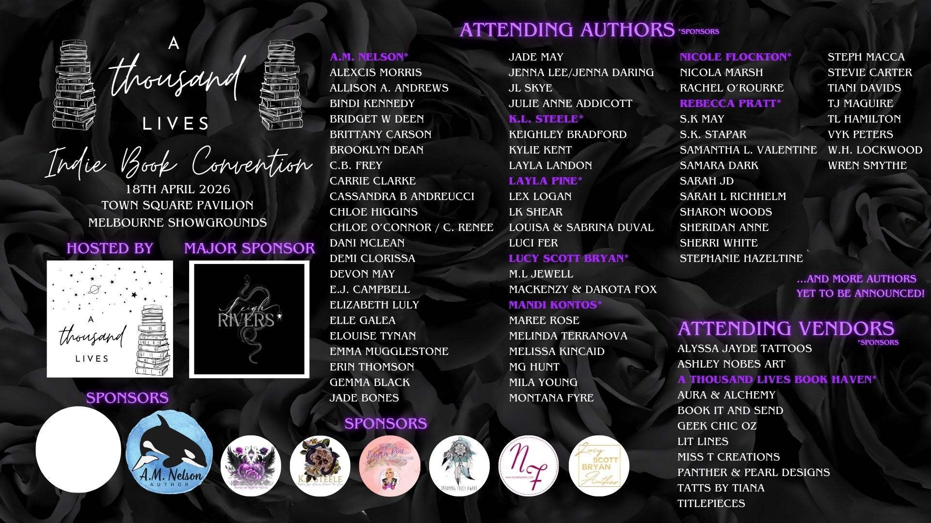 Author and Vendor EOI's are still open, however we are fully booked out at this stage! We will be placing any new EOI's onto the waitlist and you will be notified should a spot become available.