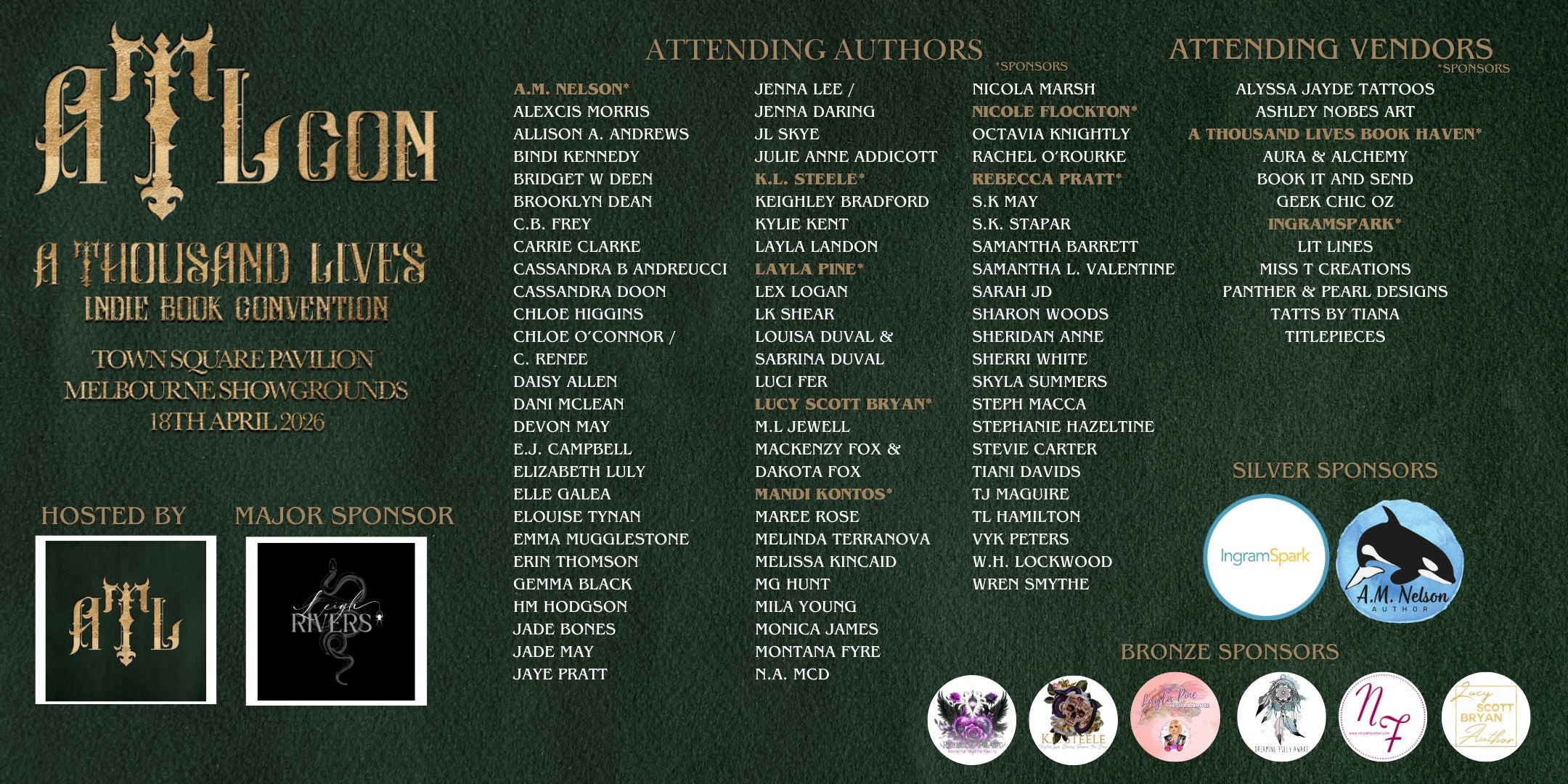 We would like to acknowledge the following incredible authors for sponsoring ATLCON26. Please take a moment to check out their websites, follow them on socials and give them all the love!