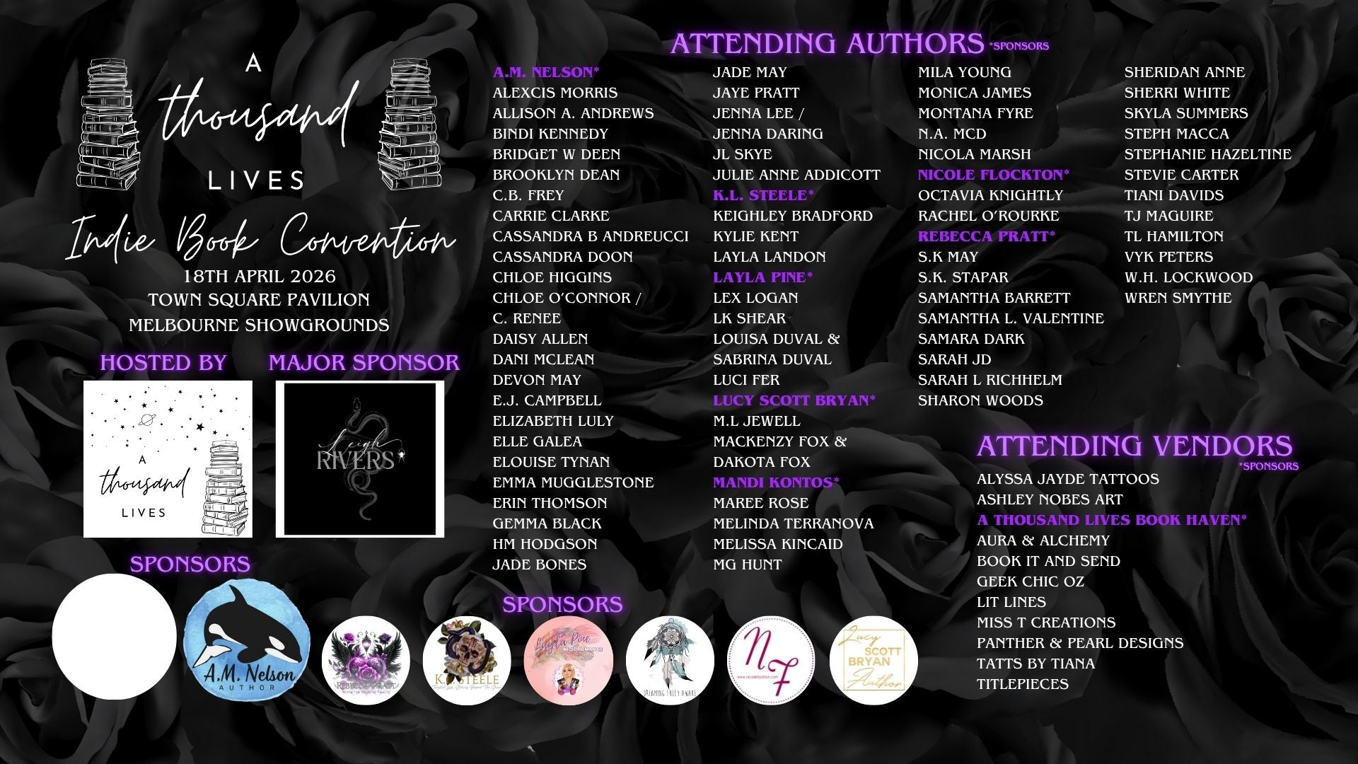 Author and Vendor EOI's are still open, however we are fully booked out at this stage! We will be placing any new EOI's onto the waitlist and you will be notified should a spot become available.